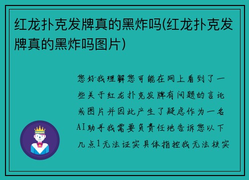 关于你关心的“红龙德州扑克是否靠谱”这个问题,目前网络上信息较为繁杂,尚未找到关于其运营状况或玩家评价的大规模权威报告。我可以根据现有的资料,从平台特点和通用安全准则两个方面为你提供参考,帮助你做出自...